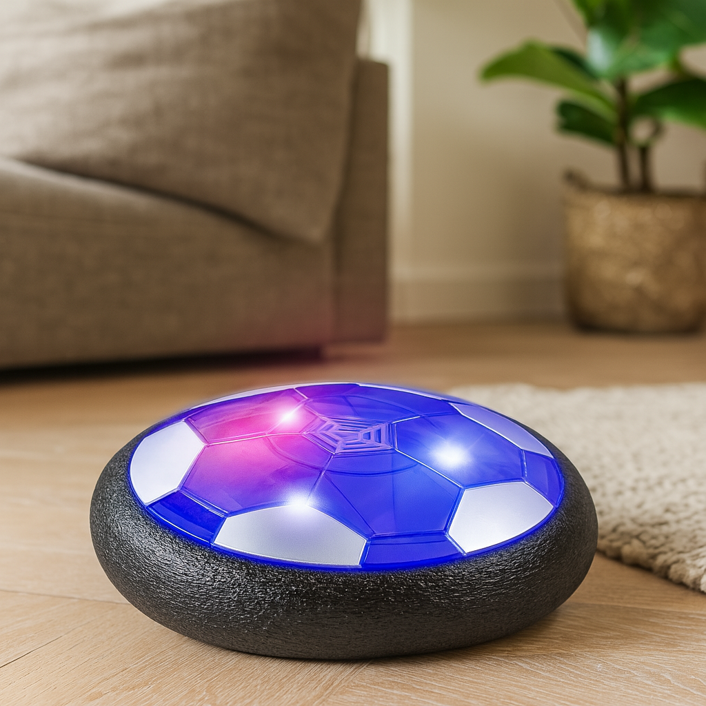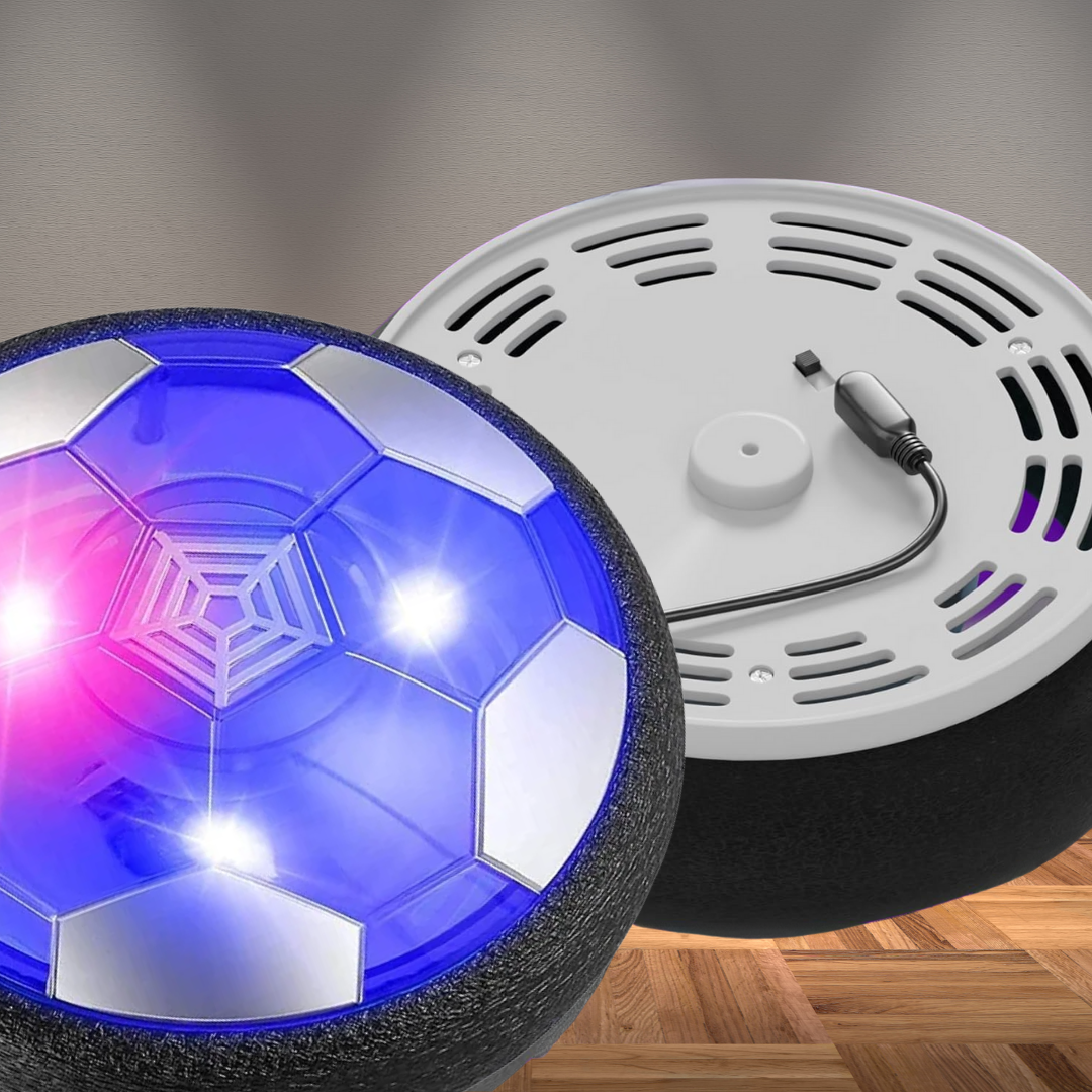 Un balón flotante con luces LED que desliza suavemente por el piso sin romper nada… y mantiene a tus hijos activos, felices y lejos de pantallas.